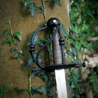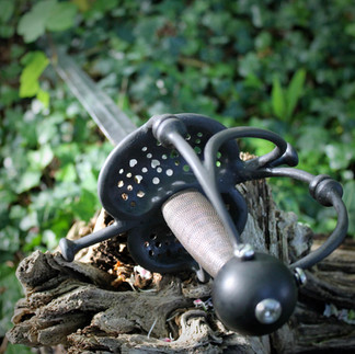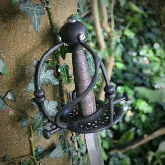 When a customer asked for a sword inspired by the legendary soldier, fencing master and prizefighter Donald McBane, we knew a walloon sword was on the cards. This type of hilt has been paired with both heavy broadsword-style blades and thinner spadroon-style blades. For this particular rendition we struck a middle ground, the result being nimble in the hand while visually recalling broader blade types. Likewise, the degree of guard was chosen to provide a good level of protection while offering a distinctly different feel to the basket-hilted broadswords our customer usually fences with. The hilt is a modicum larger than some historical counterparts, allowing for use with a lightly padded glove. In many respects this sword was designed as a jack of all trades, able to contend with both broadsword and smallsword fencers, thus ideally suiting the legacy of McBane's writings. Please see our pricing structure for an idea of what a similar sword would cost.