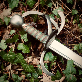 The shape of the hilt is based on an Elizabethan backsword housed in the Palazzo de Venezia. Its wide, flat barwork provides an ideal base for engraved decoration, as well as ample hand protection when used at the correct angles.